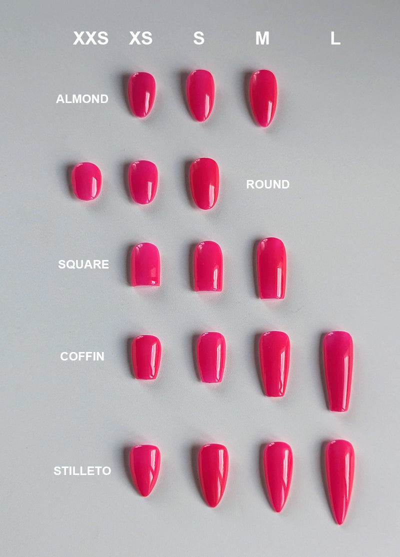 Ensemble de 10 ongles avec la couleur unie et la forme au choix. En savoir plus sur les formes et longueurs disponibles